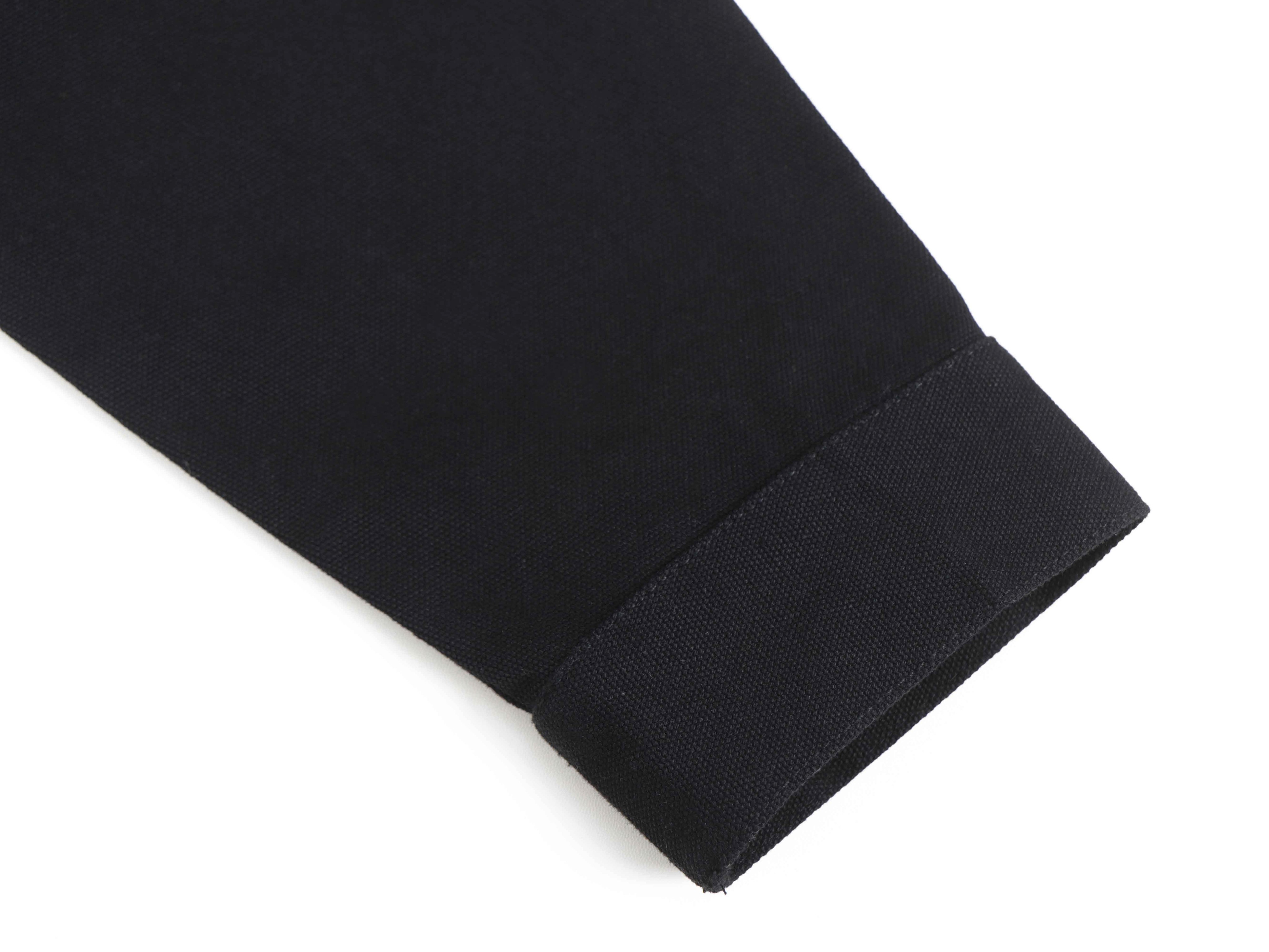 Constructed from 16 ounce duck canvas and stainless steel hardware. Patterned specifically to have a high sleeve opening the jacket is designed to emulate the look and feeling of a medieval straight jacket. Also featuring two front welt pockets and four interior lined stash pockets. Pattern and constructed January 2025