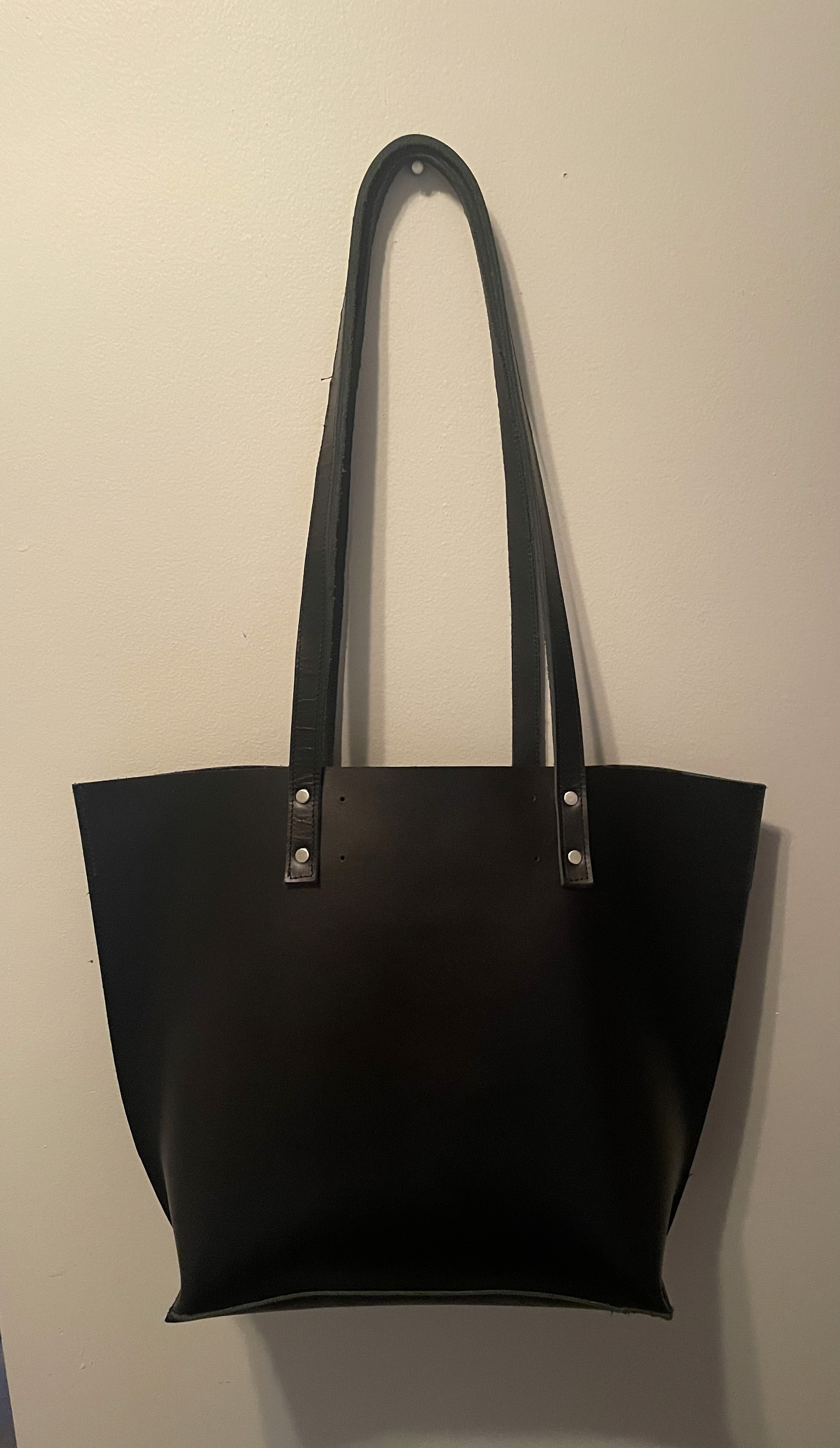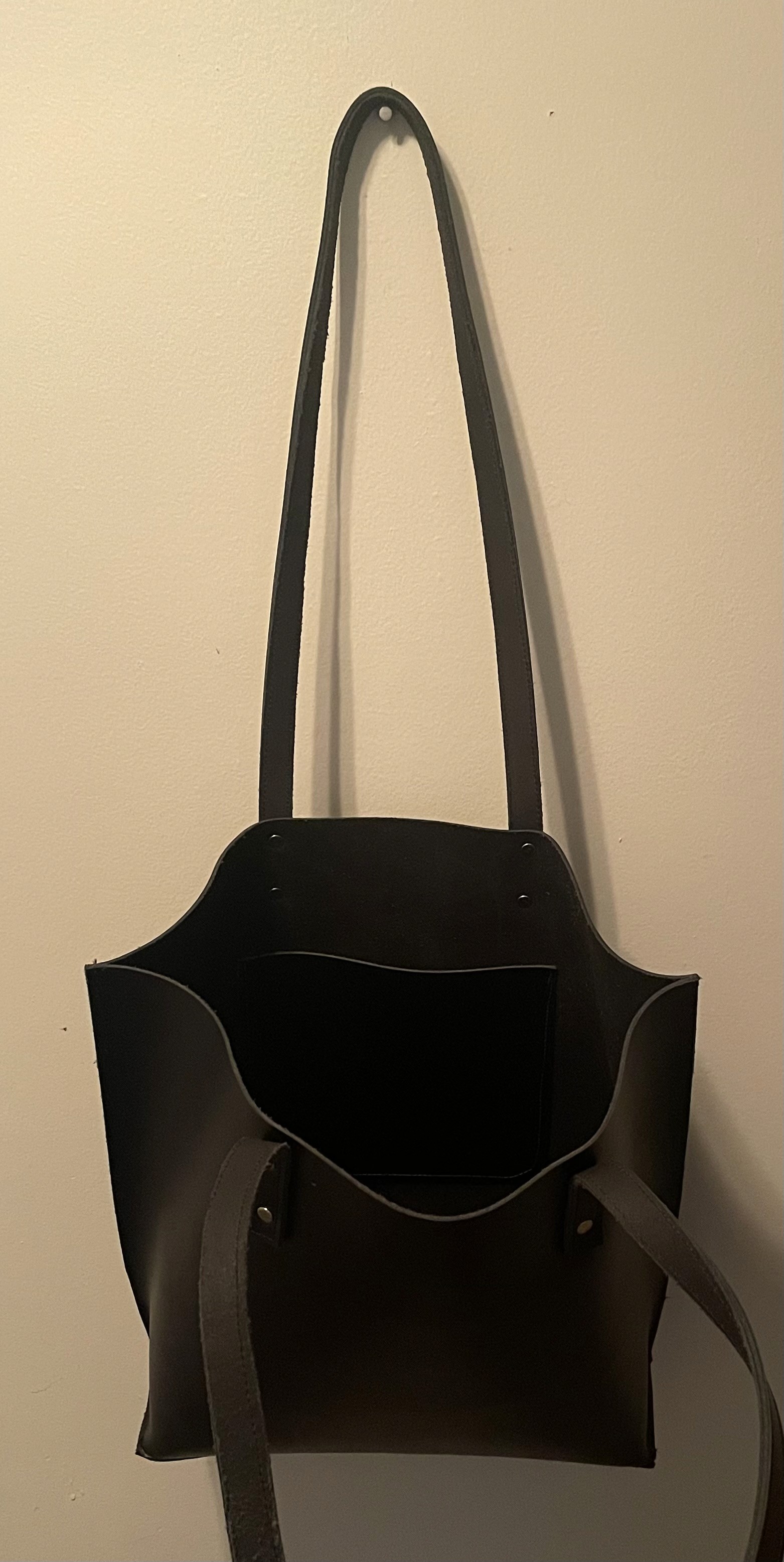 A bag created for daily use, constructed from locally sourced hard leather cowhide and stainless steel rivets.